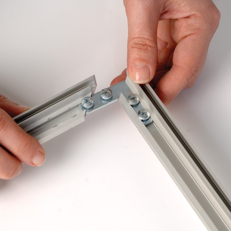 Pentru realizarea ramelor cu acest tip de profil sunt necesare următoarele accesorii: colțar tip L (4buc/ramă), bandă nylon (cheder) - 13x3mm.